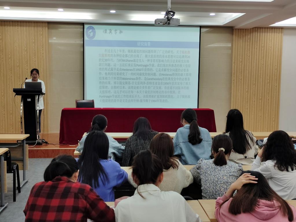 6月2日晚,数聚西海岸科学讲堂——研究生讲坛第154期在J9-433成功举行。必赢3003no1线路检测中心2020级数学专业硕士宋立凤作了题为“具有乘性噪声的离散时间随机系统最优控制的极大值原理”的报告。本次点评嘉宾是必赢3003no1线路检测中心蔺香运老师。学院30余名研究生参加了此次讲坛,本次讲坛由科技部许慧主持。