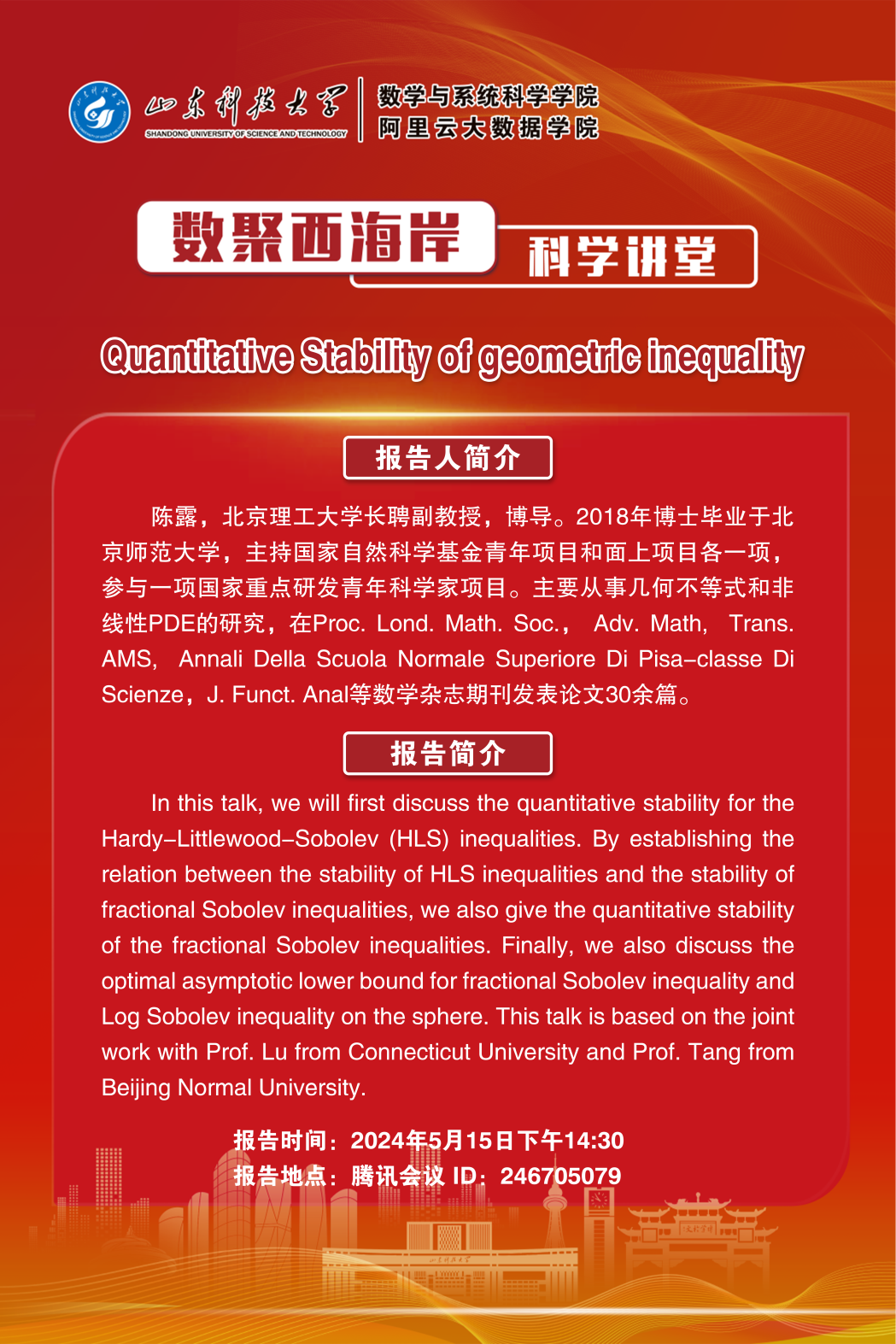 数聚西海岸科学讲堂2024年第25期:陈露副教授学术报告