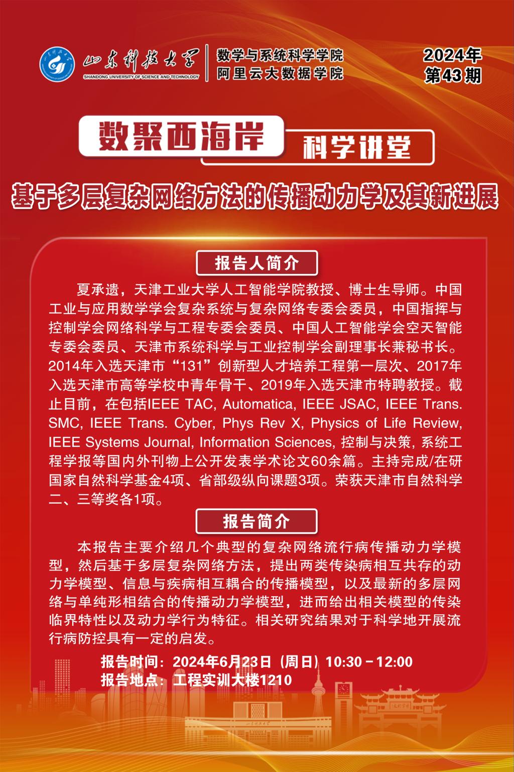 数聚西海岸科学讲堂2024年第44期:夏承遗教授学术报告