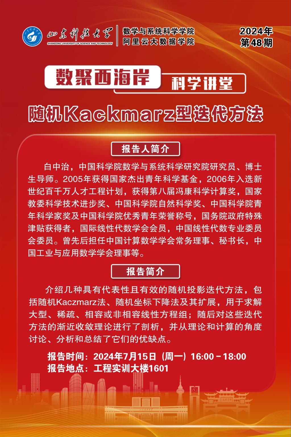 数聚西海岸科学讲堂2024年第48期:白中治研究员学术报告