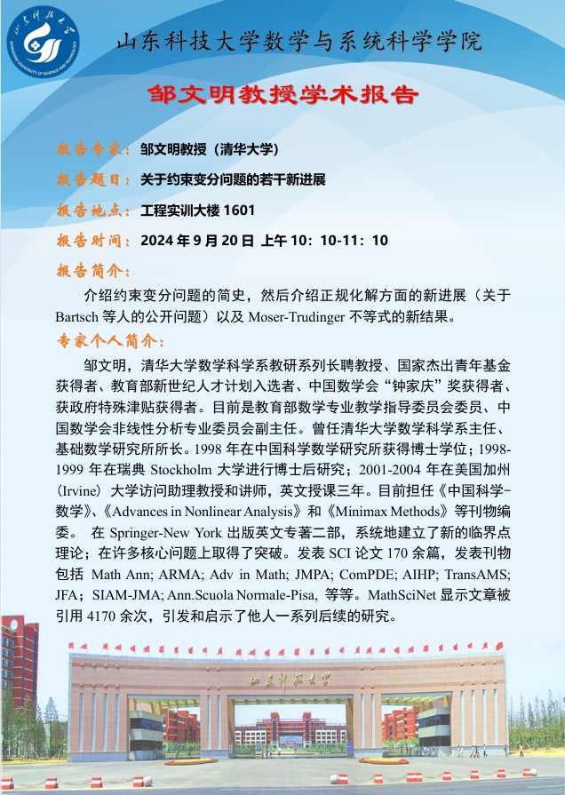 清华大学邹文明教授学术报告