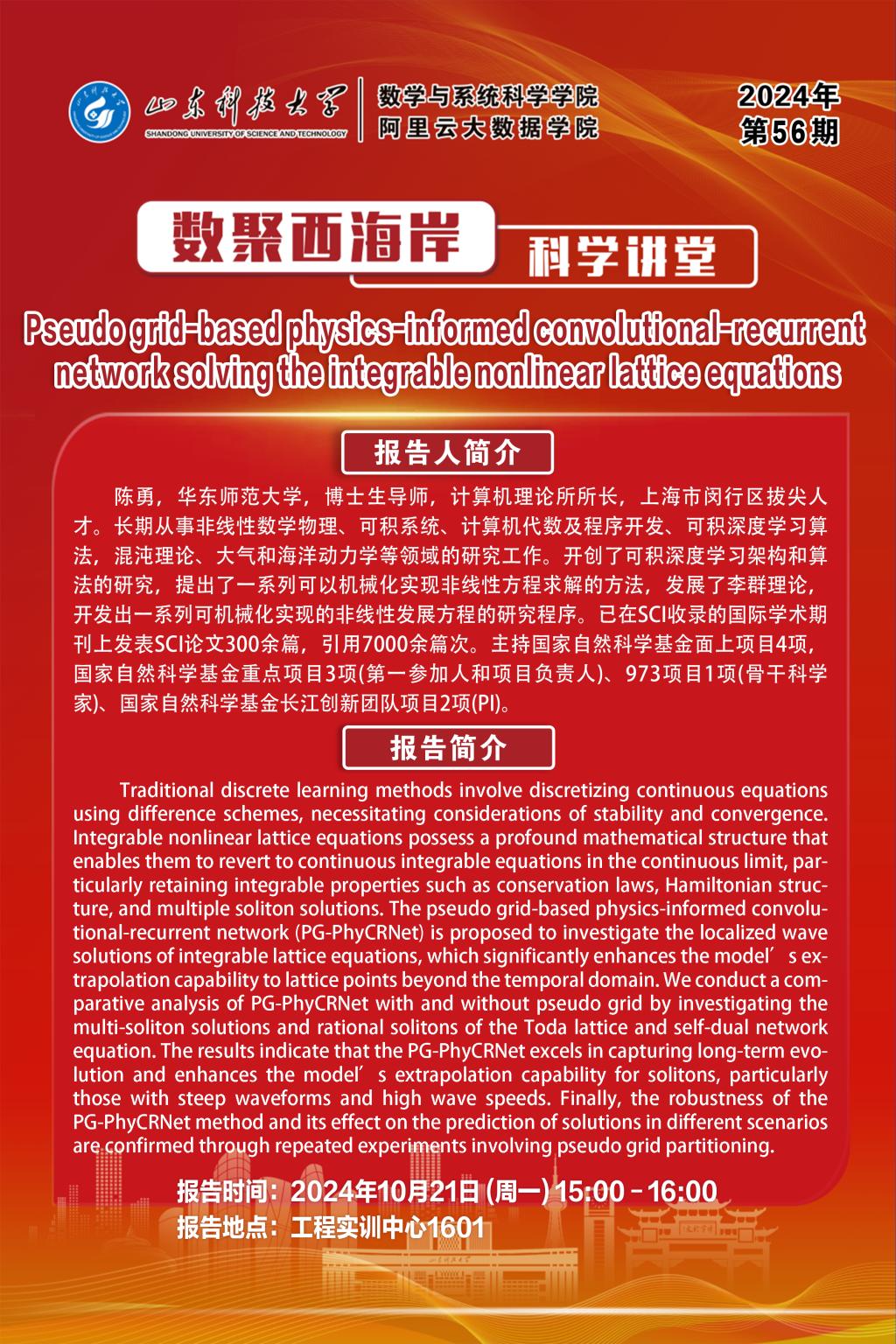 数聚西海岸科学讲堂2024年第56期:陈勇教授学术报告