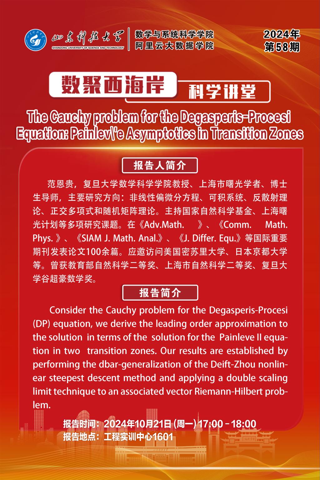 数聚西海岸科学讲堂2024年第58期:范恩贵教授学术报告