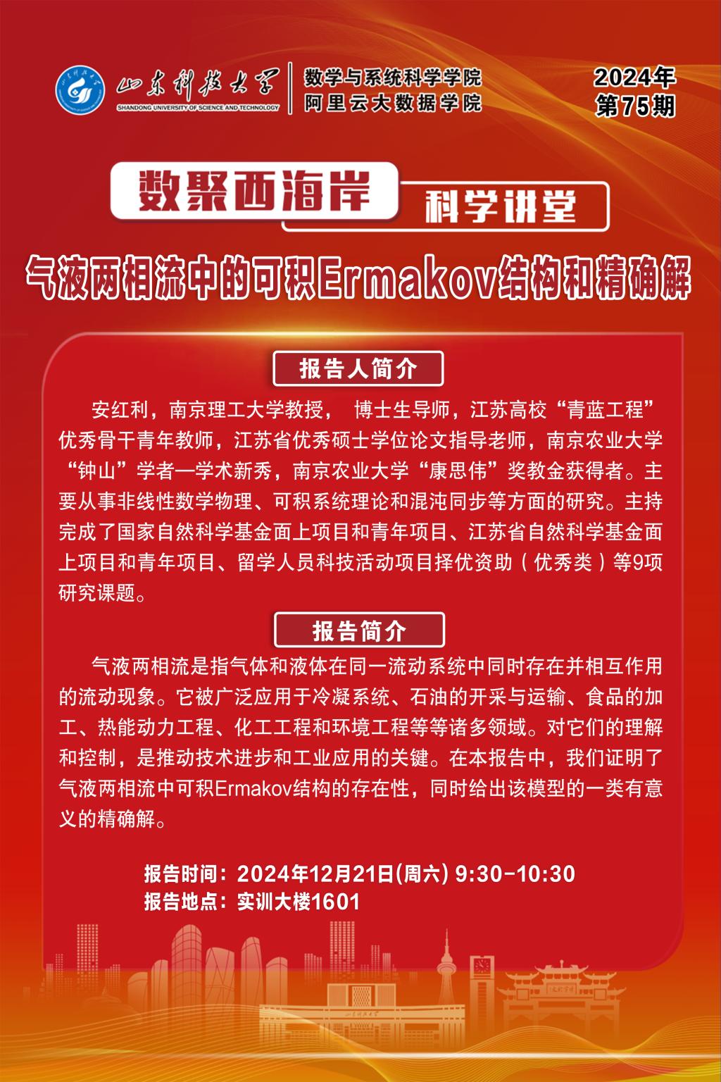 数聚西海岸科学讲堂2024年第75期:安红利教授学术报告