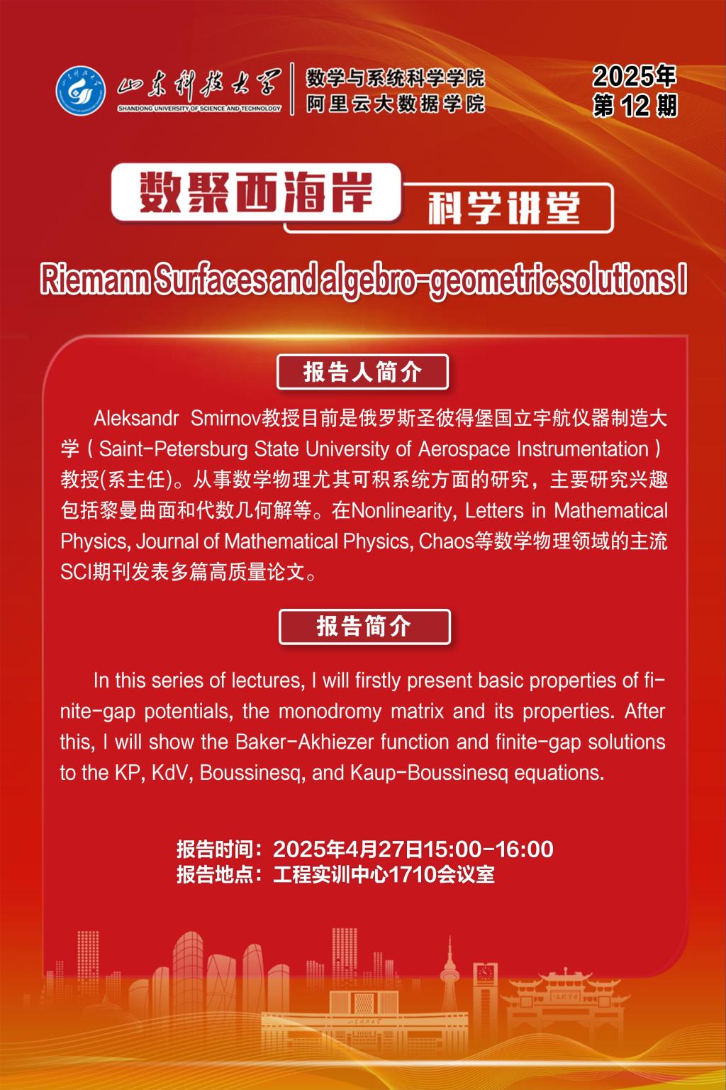 数聚西海岸科学讲堂2025年第12期:Aleksandr Smirnov教授学术报告