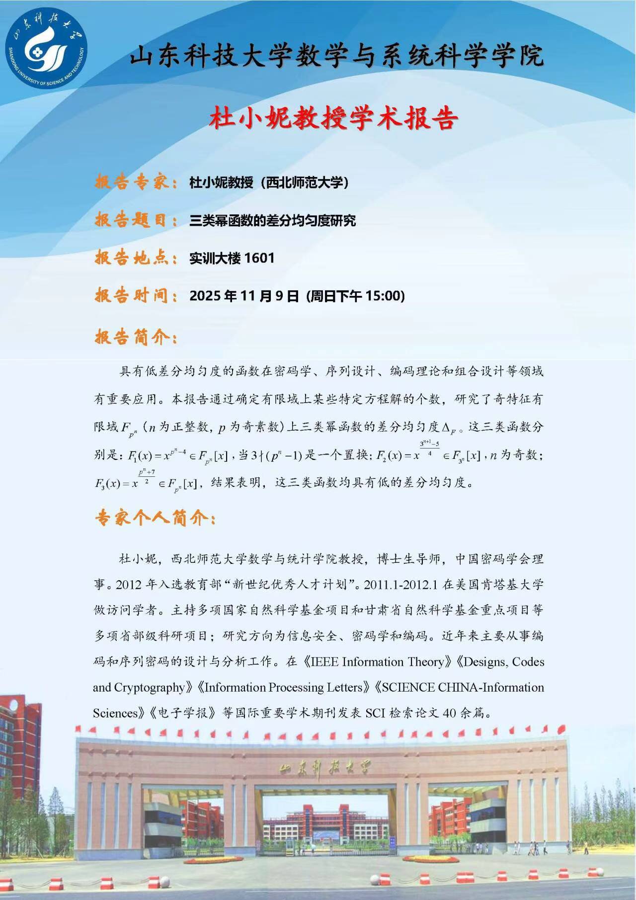 数聚西海岸科学讲堂2025年第20期:杜小妮教授学术报告