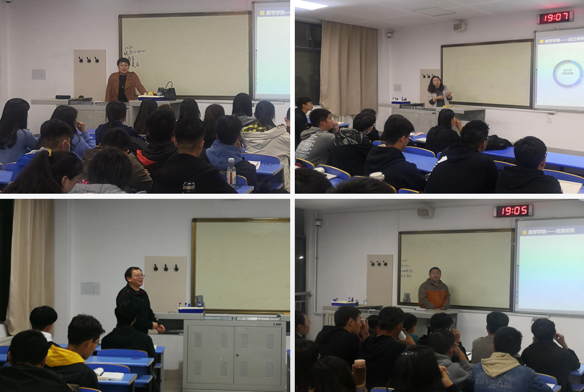 教师党员从学院发展历程、师资结构、学科专业及考研就业等方面详细介绍了学院相关情况,为新生们提出了要明确目标,学习为主,全面发展,走好进入大学每一步路的建议。系统科学系党支部书记王永丽说道,“大数据正广泛应用并改变着社会的各行各业,同时也将引领大数据人才的变革,作为新时代大学生,要有明确的定位和全面的规划,热爱专业,努力学习,尽快树立发展目标,做好学涯、职涯规划,争做优秀数学人。
