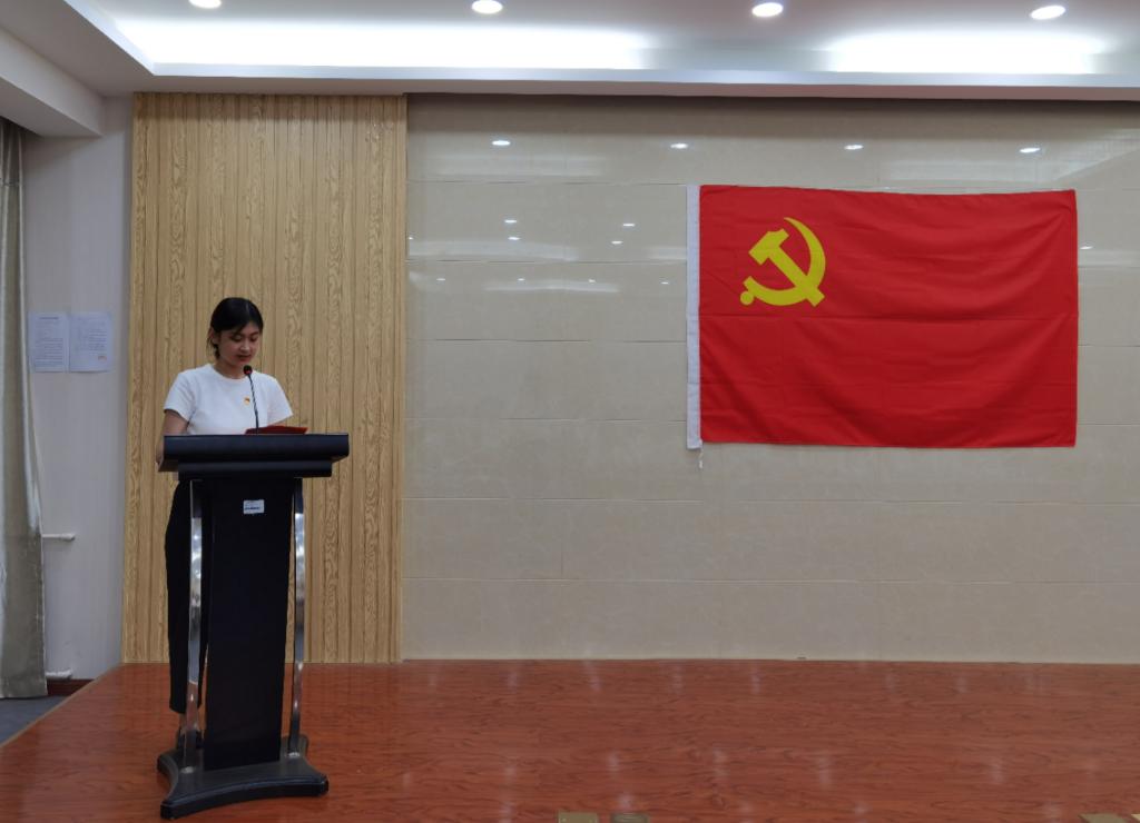 仪式在雄壮的《国际歌》声中拉开帷幕,党员们一起高举右手,面对鲜红的党旗庄严宣誓。随后新党员代表田润智和老党员代表张艺馨分别发言,表达了自己要恪守在党旗下的誓言,以更加严格的标准要求自己,时刻保持共产党员的先进性和先锋模范作用,不断超越自我成为一名优秀共产党员的决心和信心。