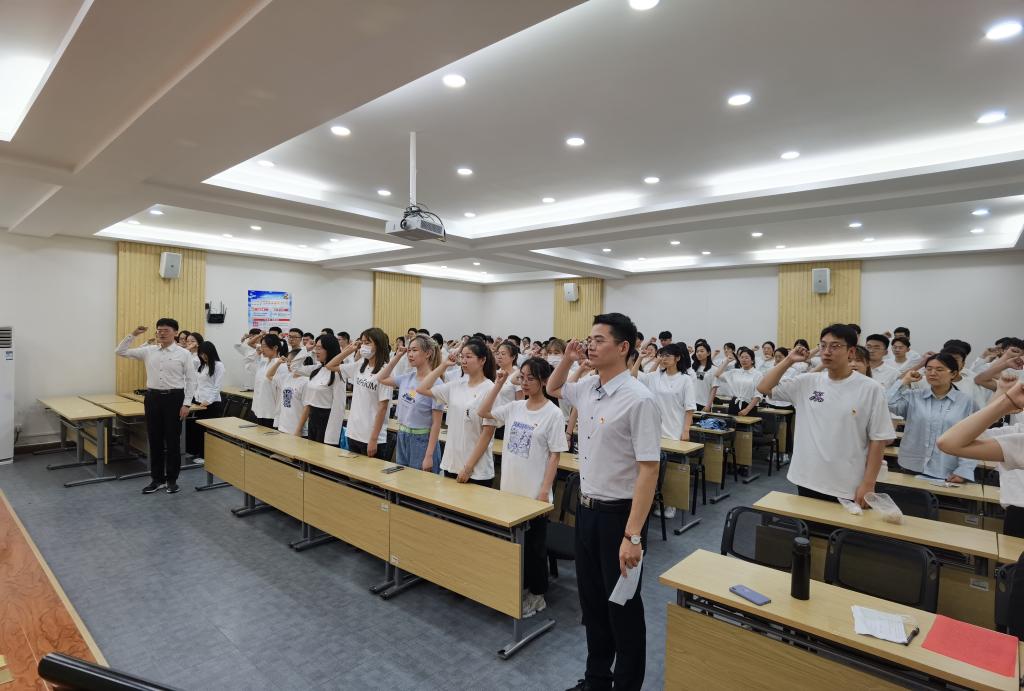 6月28日下午,必赢3003no1线路检测中心学生党支部在J9-433举行迎“七一”重温入党誓词暨新党员入党宣誓仪式,学院全体学生党员参加活动,会议由本科生第一党支部书记范轲主持。教育引导学生党员在铮铮誓言中铭刻初心,从党的奋斗历程中汲取前进力量。