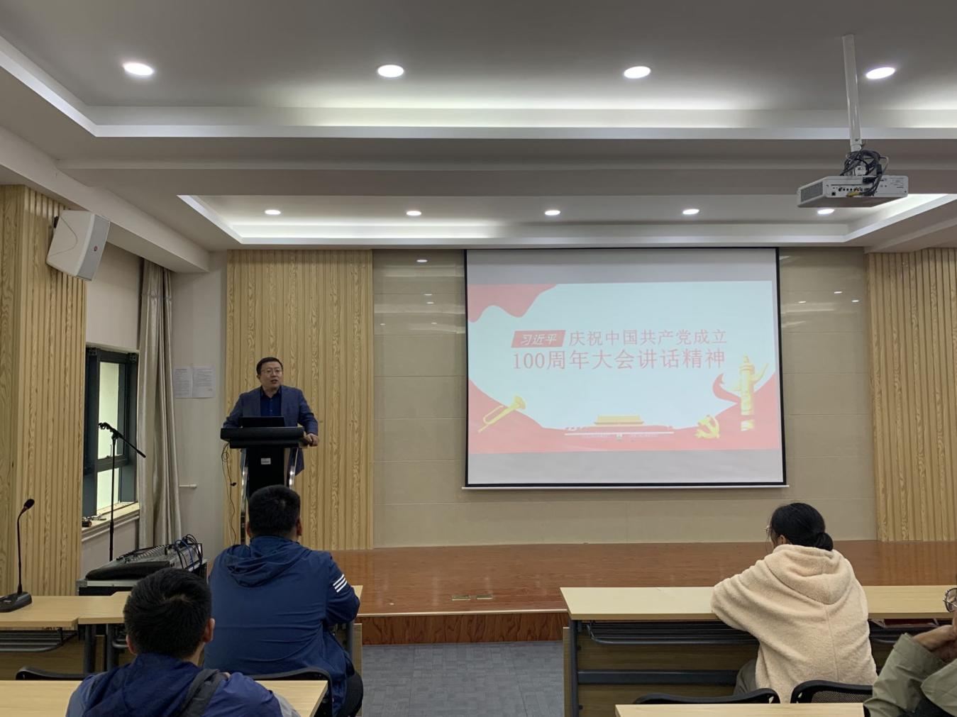 杨红卫围绕习近平总书记在庆祝中国共产党成立100周年大会上的重要讲话精神,生动地为同学们讲解了1921年到2021年的一百年间,中国大地发生的沧桑巨变,讲述了中国共产党团结带领中国人民,书写了中华民族几千年历史上最恢宏的史诗,系统阐释了中国共产党为什么“能”、马克思主义为什么“行”、中国特色社会主义为什么“好”。深入浅出的讲解、生动鲜活的案例让同学们深刻领会了伟大建党精神的丰富内涵。