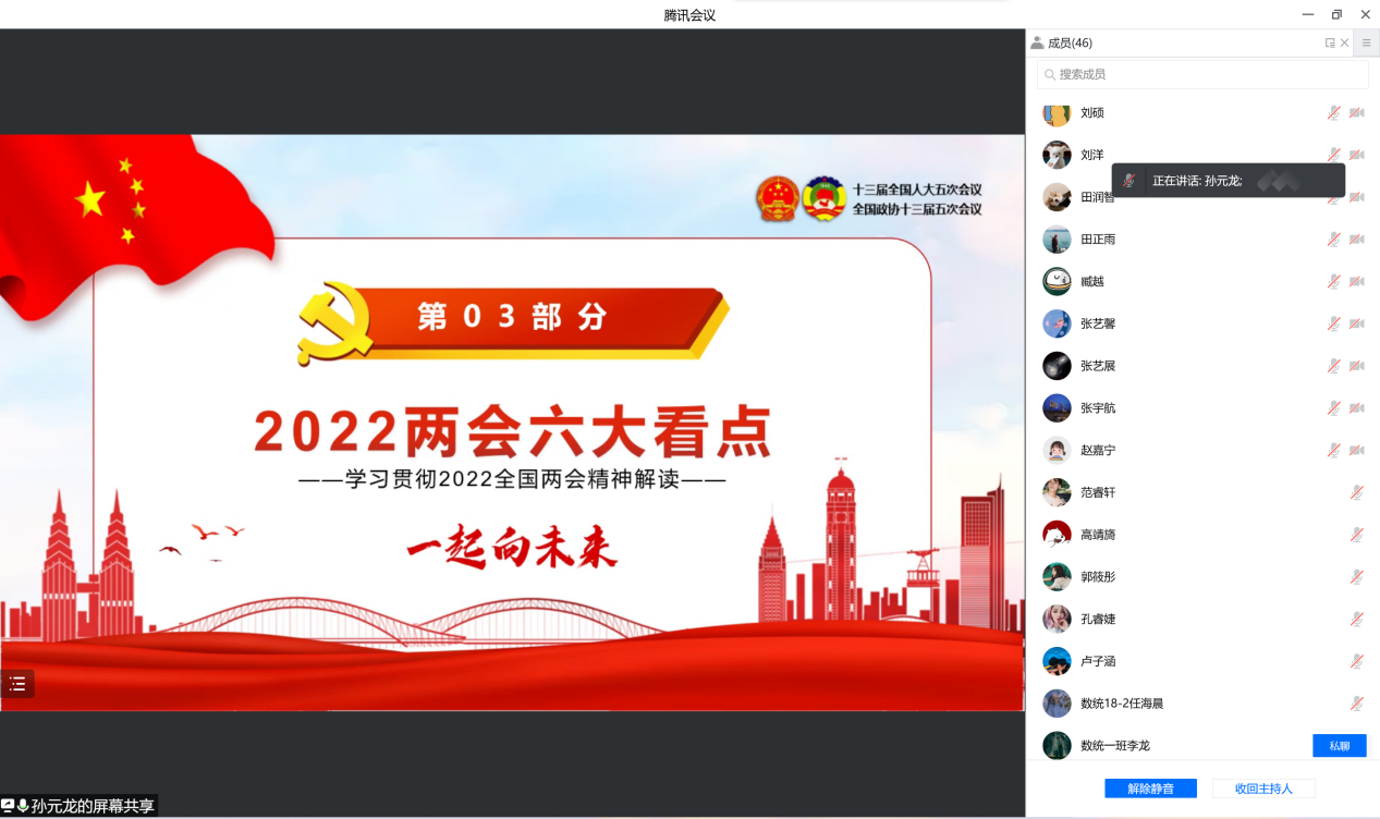 3月25日下午,必赢3003no1线路检测中心本科生第四党支部通过腾讯会议线上举办第94期“青春党建微讲堂”。本期微讲堂由本科生第四党支部党员孙元龙和胡若凡担任主讲,主题为“聚焦全国两会,一起向未来”。本科生第四党支部全体党员参加。