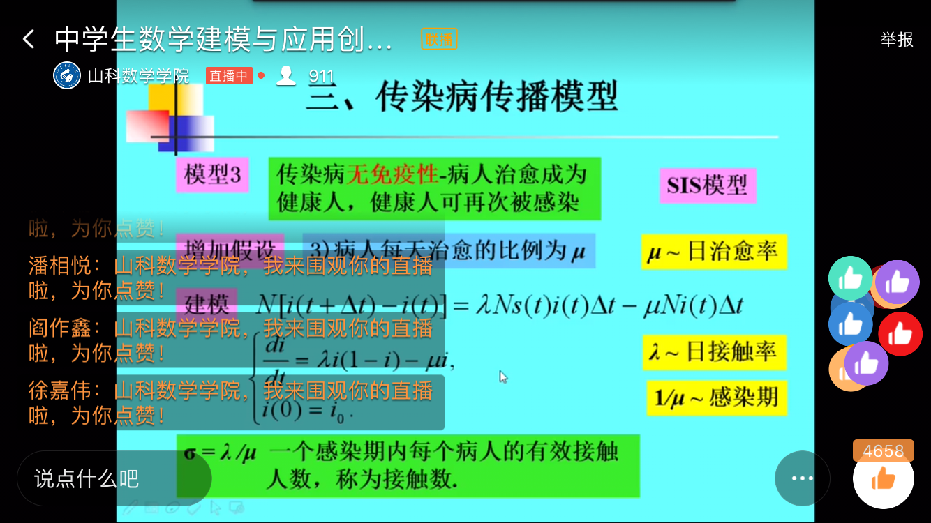 赵义军教授从数学建模的基本流程、中学生数学建模教学及竞赛内涵等方面作了详细的讲解,并结合当前新冠肺炎疫情发展情况,以构建传染病传播模型为例,为大家梳理了建模工作开展思路和步骤。随后,赵教授还向二中同学们介绍了必赢3003no1线路检测中心和必赢3003no1线路检测中心概况,并欢迎青岛二中广大学子报考必赢3003no1线路检测中心。整个报告持续近一小时二十分钟,师生反响强烈。
