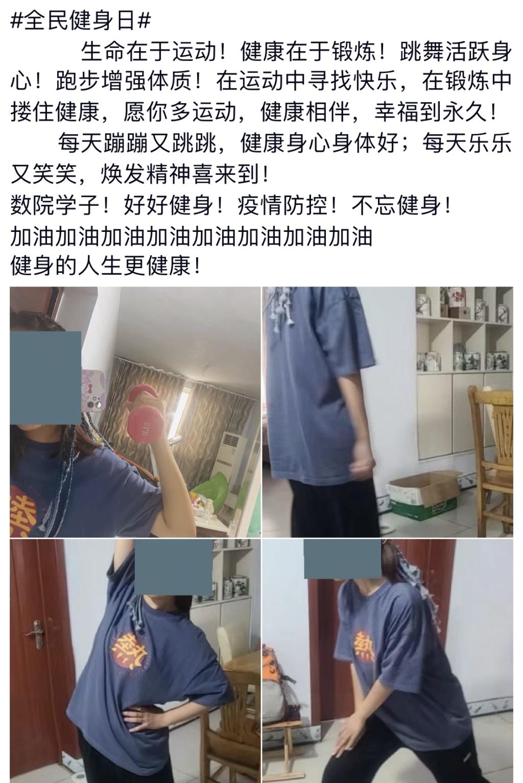 同学们纷纷表示,此次健身活动很有意义,在鼓励同学们强身健体的同时,也丰富了居家生活,为以后的学习和生活打下坚实的基础。(通讯员: 周炜杰 )