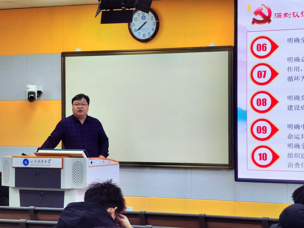 通过宣讲,同学们进一步加深了对党的十九届六中全会精神深刻内涵的理解,并纷纷表示,在今后的学习工作生活中,将自觉用习近平新时代中国特色社会主义思想武装头脑、指导实践,从党的百年奋斗历程中汲取前行力量,勇做走在时代前列的奋进者、开拓者、奉献者,为实现第二个百年奋斗目标、实现中华民族伟大复兴的中国梦贡献青春力量!(通讯员:盖康)