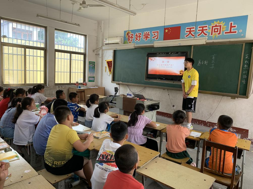 实践活动中,他们与乡村支教队伍取得联系,为乡村留守儿童带来“红色教育”精彩课堂,课堂上,志愿者们生动讲述了中国共产党成立初期的感人故事和那些为新中国成立和发展呕心沥血的热血青年,让孩子们对中国共产党有了更加深刻的认识,立志好好学习,增长本领,将来报效祖国。志愿者们还积极和孩子们倾心交流,陪他们打羽毛球、篮球,给他们带来欢乐和陪伴。