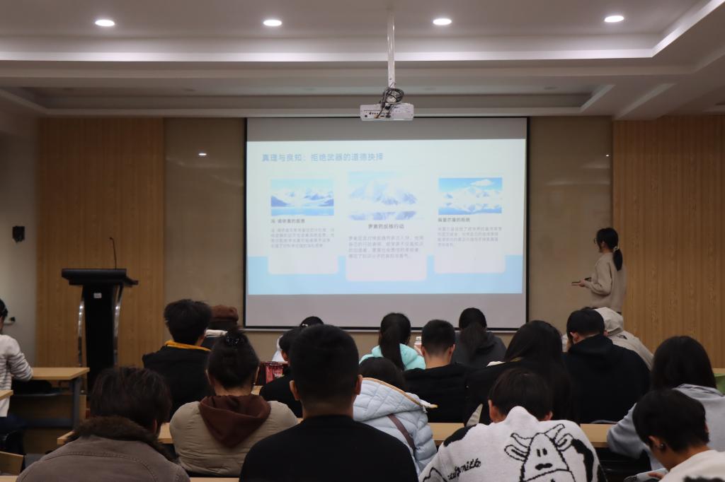 活动现场气氛热烈。各团支部学生代表依次登台,通过讲述数学家追求真理、献身科学的动人故事,深情回望我国数学事业的发展历程。他们从华罗庚的家国情怀谈到陈省身的学术坚守,从苏步青的躬耕不辍讲到吴方的潜心钻研。一位位数学大师以卓越成就和高尚品格,为新时代青年树立起追求科学、勇攀高峰的精神坐标。同学们认真聆听,在感悟中汲取力量,在交流中凝聚共识。(通讯员:王文轩 梁天雨 初审:李思涵 责编:葛天晨 终审:尹建 摄影:闫文兵 王颢达 刘昊阳)