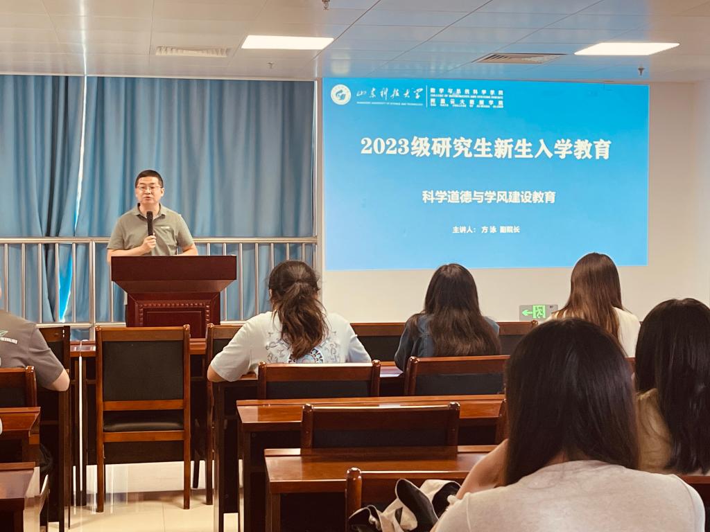 方泳对2023级研究生的到来表示热烈欢迎,详细介绍了学校和学院研究生培养工作要求,他紧紧围绕“科学道德与学术规范”的主题,从学习态度、论文撰写、学位申请等方面为同学们进行详细阐述,并对全体研究生提出三点希望,一是诚实守信,做诚信的科研人;二是勤奋刻苦,做勤勉的科研人;三是团结友爱,做互助的科研人。