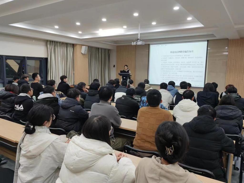 会上,辅导员带领学生一同观看防诈案例视频和宣传短片,学习防范电信网络诈骗宣传手册,向学生普及网络电信诈骗的常见手法和新型方式等,告诫同学们牢记“八个凡是”,用好七个反诈利器。随后,辅导员带领同学们认真学习了《中华人民共和国反电信网络诈骗法》部分章节,并组织学生现场签署“不参与电信网络诈骗犯罪承诺书”。