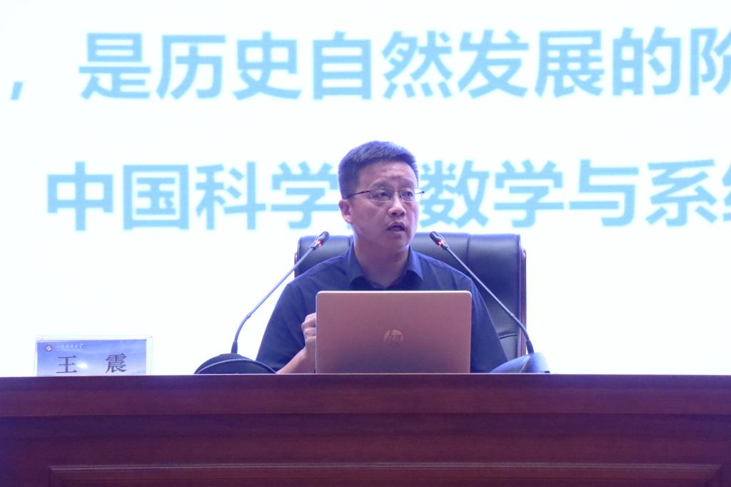 王震用鲜活的案例、生动的故事,讲述了多位数学家在学科交叉融合发展过程中取得的重大成就,并向同学们形象诠释了“数学家精神”的重要内涵。他指出当今科学技术的突破日益依赖学科界限的打破和相互渗透,对高层次创新型、复合型、应用型人才的需求更为迫切,要强化数学在各学科、各行业的交叉融合,实现资源共享、优势互补,为未来的学术创新注入新的不竭动力。