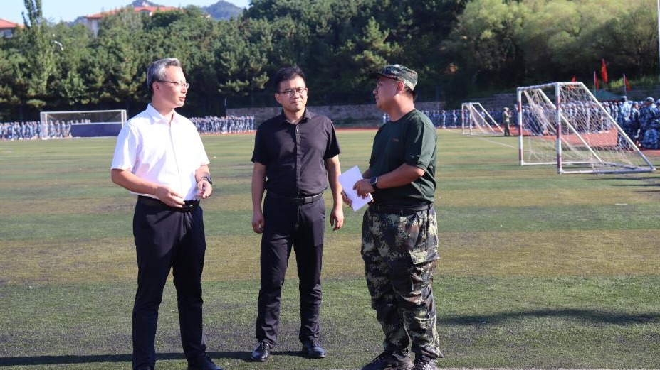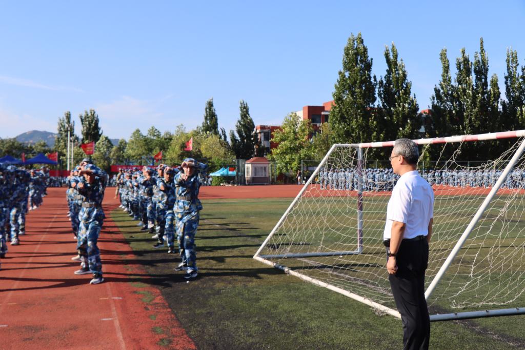 学院领导对军训工作高度重视,学院党委书记贾红果、党委副书记兼副院长尹建亲临军训现场,深入了解军训情况,细致观察学生军训表现,检查后勤保障和军训氛围营造工作。贾红果书记针对后续训练工作提出了要求,要教育学生思想重视军训、提升军训训练质量,培养学生的“精气神”。最后,贾红果书记亲切慰问见训学生情况,并鼓励他们在军训期间做些自己力所能及的服务工作,以另一种方式参加军训,融入集体。