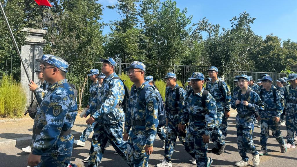 早上7时许,风雨操场起点处,军训服的迷彩交相辉映,同学们的壮志豪情溢于言表。随着校长曾庆田一声令下,队伍如龙出海,势不可当。校园内,林立的树木见证着他们的坚韧与决心。穿越染毒地带,毛巾、防护面罩齐上阵,步伐稳健,眼神坚定,无畏前行;模拟核闪光下,隐蔽迅速,冷静应对,展现了数学学子的智慧与勇气。急行军途中,汗水与泥土交织,喘息与坚持并存。他们并肩作战,相互扶持,用行动诠释了团队的力量。拉练途中,障碍重重,却难挡他们前进的步伐。挑战自我,超越极限。“战旗上写满铁血荣光……”同学们在拉练途中高唱《强军战歌》,书写了属于自己的荣光。