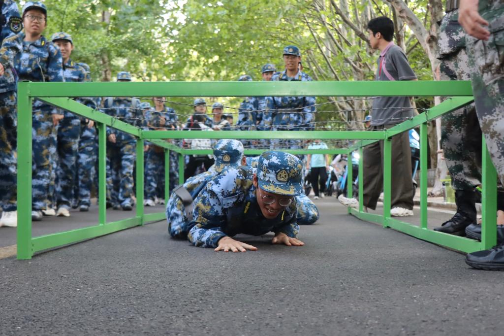 队伍从操场西门出发,沿着既定路线行进。一路上,秋日的阳光洒在身上,既带来温暖,也增添了几分燥热,他们迈着整齐的步伐,歌声、口号声此起彼伏,展现出青春的活力与激情。拉练途中,还设置了多个障碍点,匍匐前进、穿越染毒地带.....他们并肩作战,相互扶持,用行动诠释了团队的力量。经过近三个小时的行进,队伍顺利返回科创园区田径场。此同学们虽然满脸疲惫,但眼神中却闪烁着胜利的喜悦和自豪。