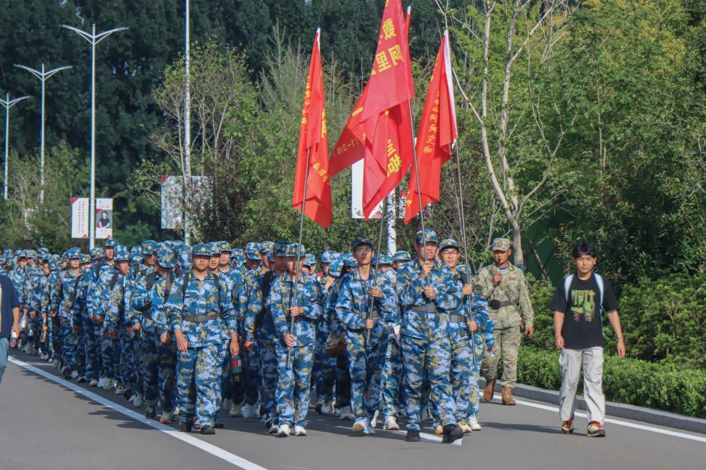 9月13日下午三点,必赢3003no1线路检测中心2025级本科生军训行军拉练活动正式拉开帷幕。此次拉练全程约10公里,是对新生们体能、意志和团队协作能力的一次全面考验。