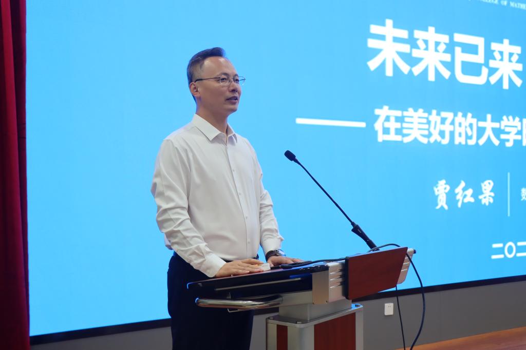 会上,贾红果以“未来已来 将至已至—在美好的大学时光遇见更好的自己”为主题,与全体参训新生展开面对面的亲切交流,为新生们的大学生活指明方向。他强调,大学是追求知识、提升自我的重要平台,同学们应深入思考其本质与内涵,树立明确目标,实现全面发展。他要求全体新生要积极调整心态,主动适应新环境,掌握独立生活与自我管理的能力,并踊跃参与社团活动、学术竞赛及社会实践,以丰富自己的大学生活,把个人成长与国家发展紧密相连,为民族复兴贡献力量。