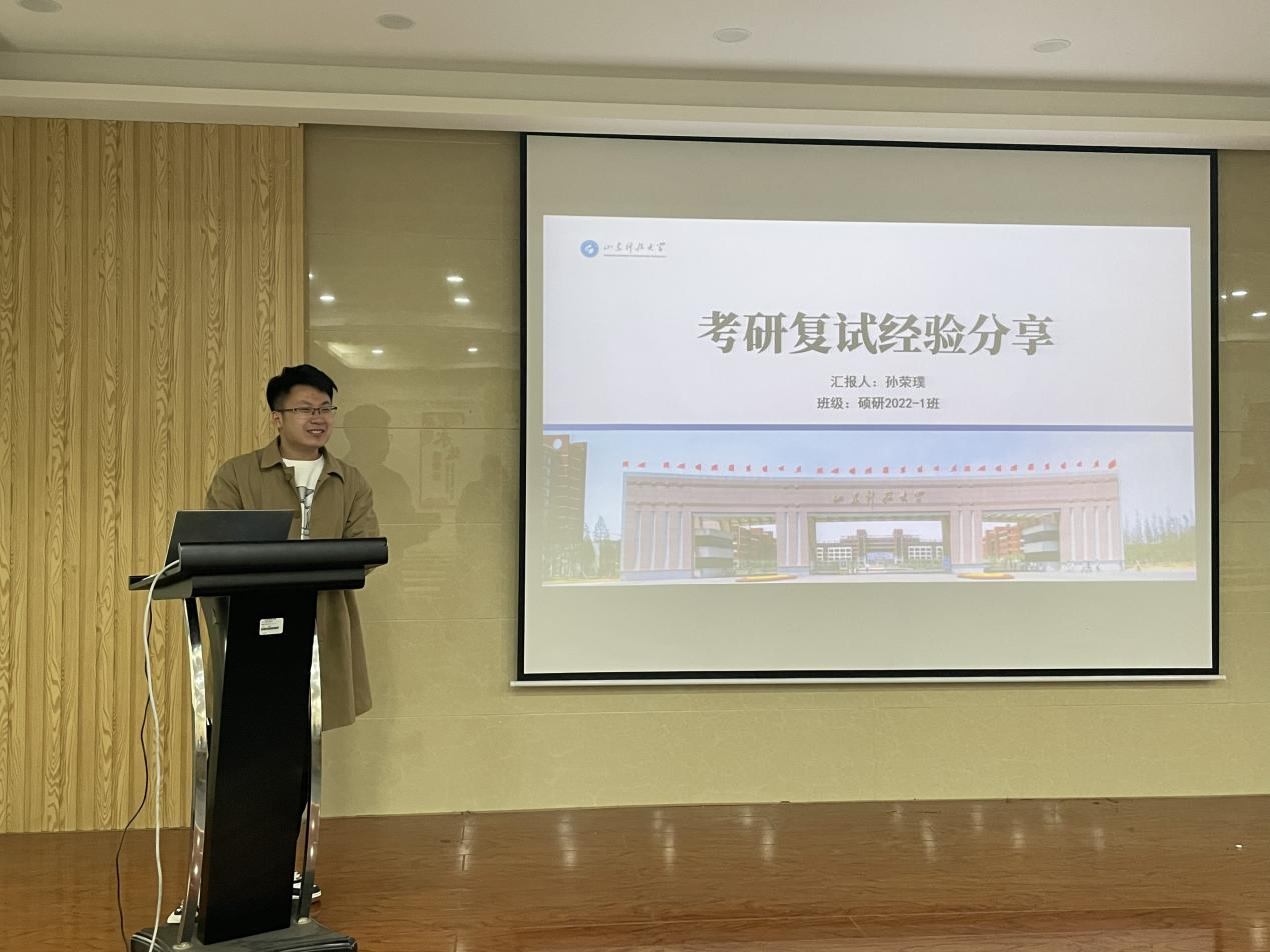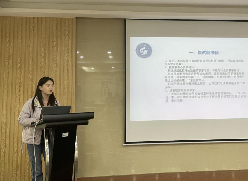 “研”途有你,全力以“复”。为帮助考研学子充分了解复试内容、明晰复试规划,提升复试竞争力,助力成功上岸。近日,必赢3003no1线路检测中心学霸助教团师生党支部在J9-433报告厅开展2023届考研复试经验交流会,党支部成员吴国潇、张鑫和孙荣璞为同学们分享考研复试经验。
