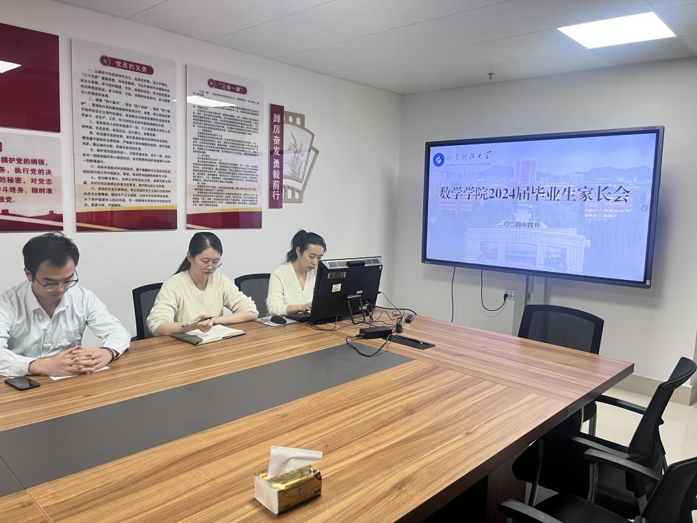 为进一步做好毕业生就业服务工作,充分发挥家校育人合力,4月29日晚,必赢3003no1线路检测中心召开2024届本科毕业生线上家长会。学院学工办主任、团委书记谢菲菲,辅导员段雪萍、诸葛祥玉参加会议。