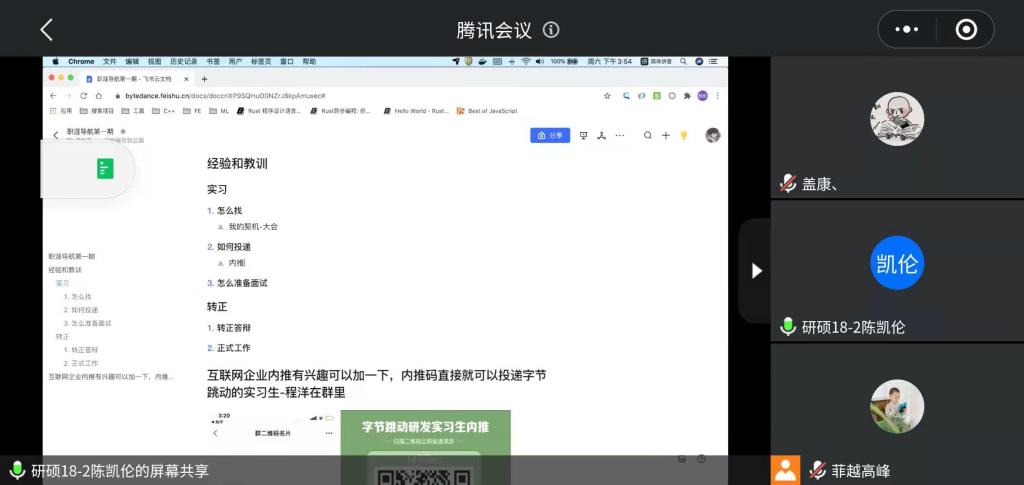 为更好地帮助大学生做好职业生涯规划,了解行业发展趋势。3月6日下午,必赢3003no1线路检测中心“职涯导航”主题系列活动在腾讯会议室成功举办,程洋、陈凯伦及胡晓雅三名优秀学生受邀参加,与我院本科各年级学生进行了线上交流。