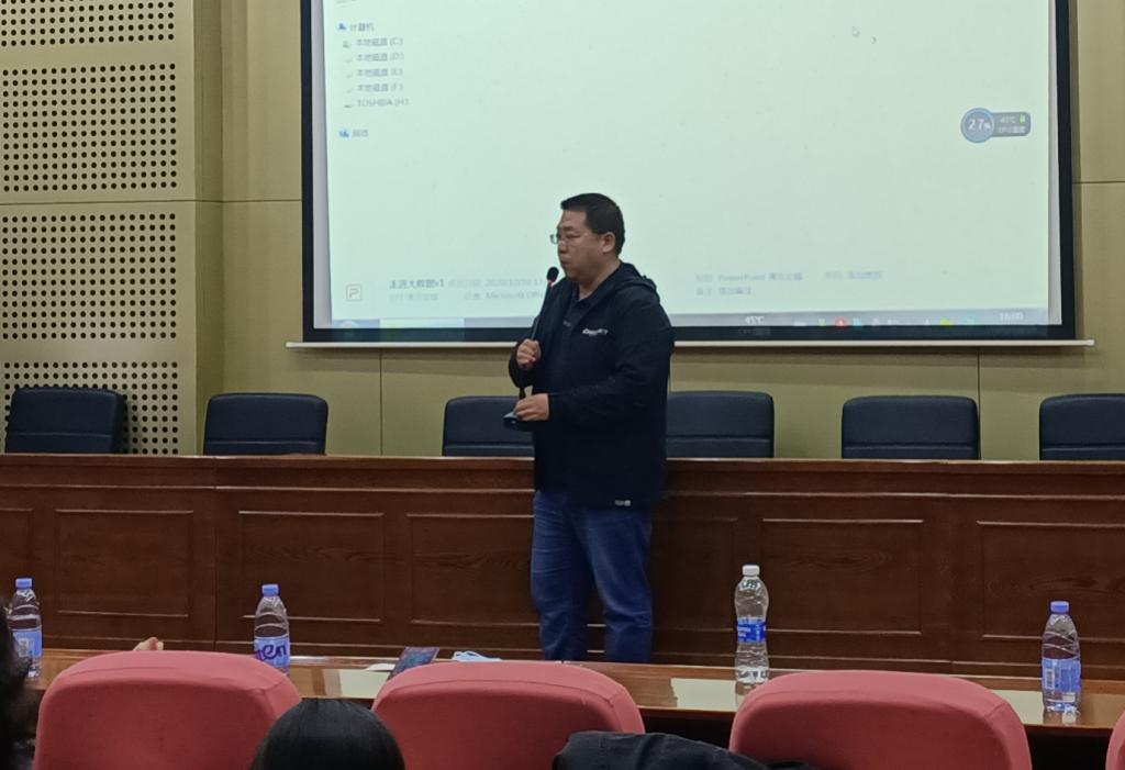 系统科学系教师张玉林结合大数据专业未来的发展前景,告诫同学们要对自己未来树立一个坚定的目标,并为之不断努力;企业驻校辅导员唐小清结合自己在校期间的学习和工作,对同学们的专业学习提出了新的要求和希望。