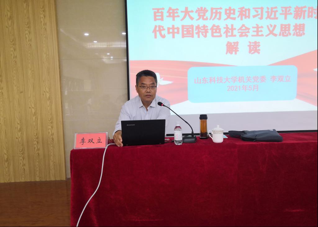 李双立的报告分为两部分。一是百年大党的历史进程,二是习近平新时代中国特色社会主义思想解读。