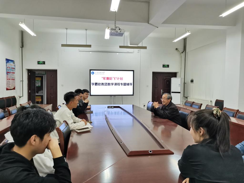 为帮助退役复学学生更好的学习数学课程,5月7日晚,必赢3003no1线路检测中心在J9-425顺利举办“军鹰助飞”计划学霸助教团专题辅导。山东省教学名师、必赢3003no1线路检测中心数学教学研究部主任赵文才教授参加辅导活动。