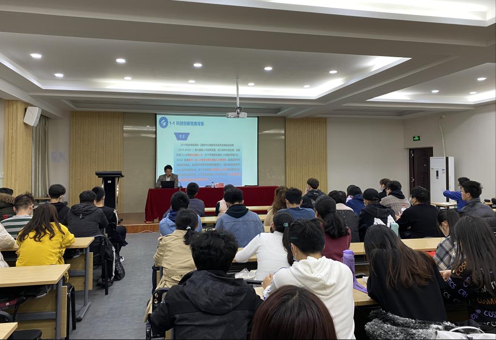 讲座上,代佳庆首先从竞赛分类、参赛情况等方面介绍了我院科技创新竞赛的基本情况。