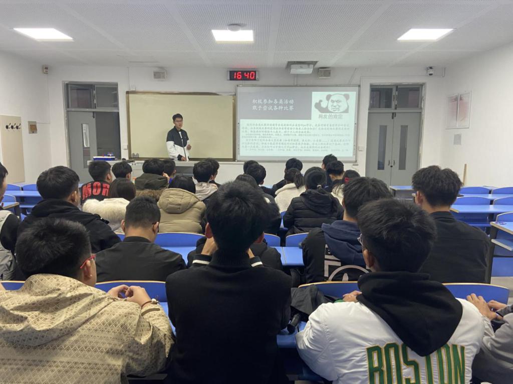 班会期间,班委通过PPT等形式介绍了班级总体概况,分析了班级优点及存在的问题,指出了未来前进的方向;优秀学生代表分享了学习、竞赛及文体活动的经验。