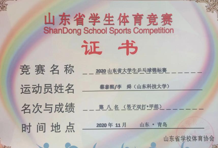 近日,2020山东省大学生乒乓球锦标赛在青岛落下帷幕。经过四天的激烈角逐,数院运动员在比赛中不负众望,喜获佳绩。
