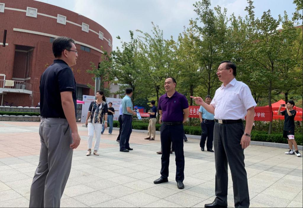 16日上午,校党委书记罗公利、副校长曾庆田带领学校有关部门领导亲临现场指导我院迎新准备工作,亲切慰问参与迎新准备工作的老师和同学。院党委书记徐明磊、院长董焕河和院党委副书记刘辉现场布置工作,师生通力协作,分别于尤洛卡广场和B区公寓楼前设立2个必赢3003no1线路检测中心迎新处。