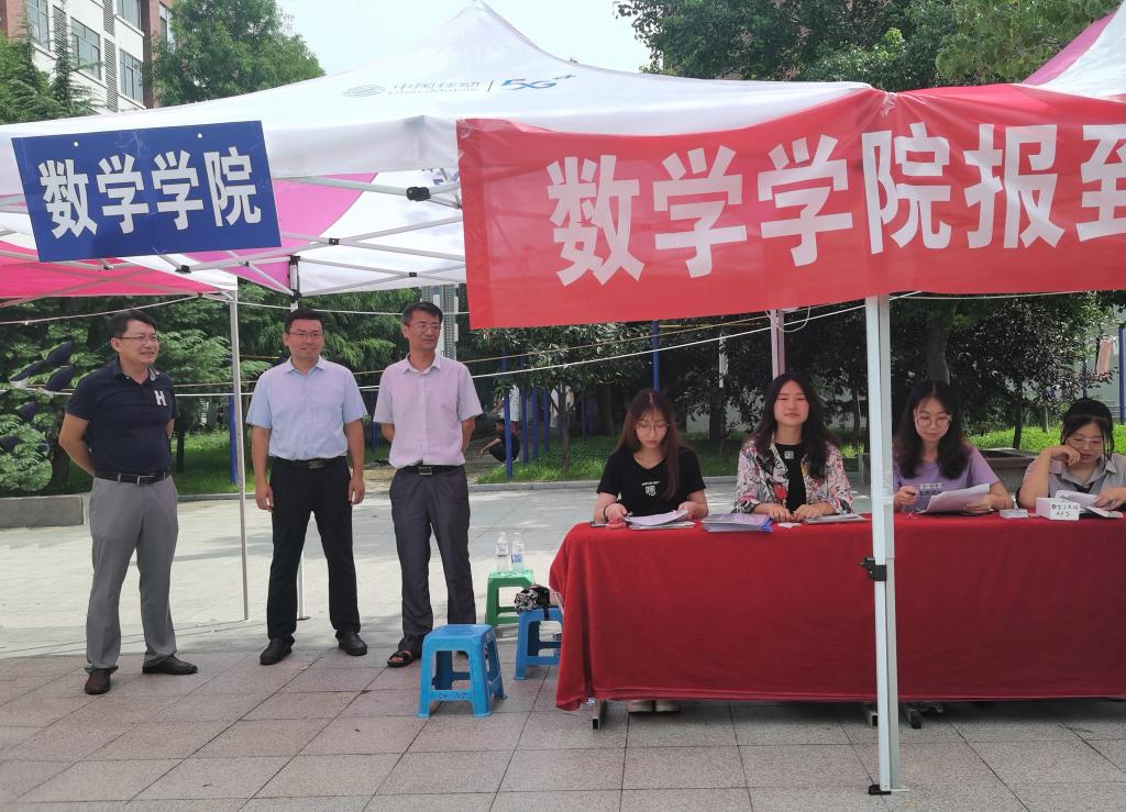 5日清晨,负责迎新的老师与志愿者同学早早赶到迎新现场,满怀热情与期待地等待研究生新生们的到来。同时,由于这个特殊的开学季,必赢3003no1线路检测中心牢记“疫情防控无小事”,在报到点贴心准备了消毒酒精等防疫物品,筑牢数学学子的健康防线。上午8时许,学院迎来了第一位2020级研究生新生,迎新志愿者帮助新生提行李、办手续,并主动介绍学校和学院情况,协助新生完成登记、注册、领取材料、入住学生公寓等一系列手续,烈日下,志愿者们通红的面庞、滴落的汗水无不诠释学院对新成员的热情欢迎。