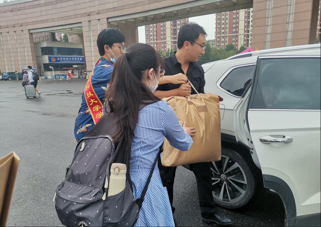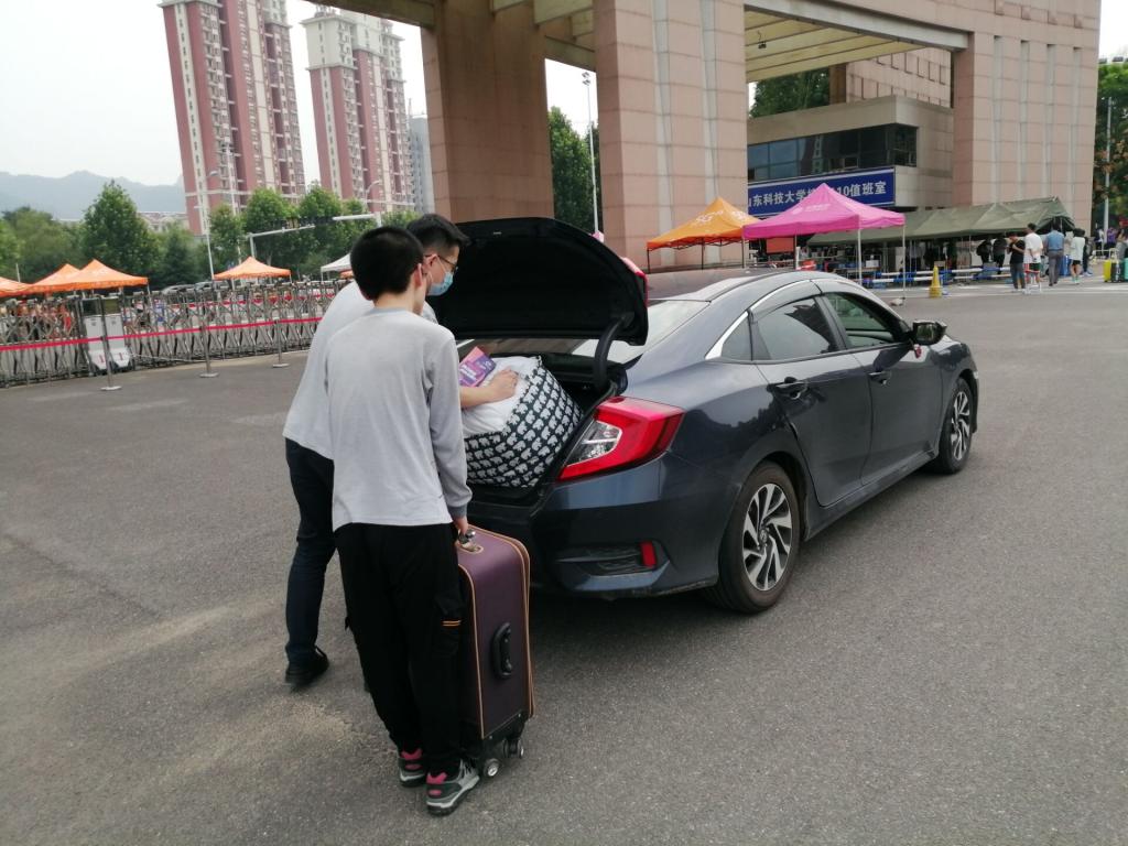天公虽不作美,却难挡数院师生的热切心情,数院学子刚踏入校门,迎面而来的便是等候已久的学生党员。为了帮助这些大包小包的“大学新鲜人”,数院师生党员自发组成“迎新”小分队,在返校入口处迎接学生,成为雨季校园里的一道靓丽风景线。搬运行李、含蓄问暖,虽没有统一的志愿者服装,但为学弟学妹们提供周到服务的热情却丝毫不减。除了学生党员,还能看到兼职“滴滴司机”的辅导员开着私家车为学生雨中搬运大件行李。