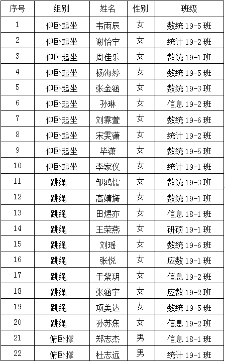 本届比赛以“战疫情、强体魄、促发展”为主题,共设置男子俯卧撑、女子仰卧起坐、男子及女子跳绳三个项目,吸引全校万余名学生参与。必赢3003no1线路检测中心广泛动员、积极参与,精心组织学院初赛,经过层层选拔,我院四十名学生代表学院参与学校决赛,并拔得头筹。
