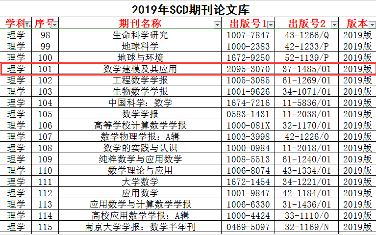 近日获悉,《数学建模及其应用》杂志入选科学引文数据库(Science Citation Database,简称SCD)。科学引文数据库(SCD)是由《中国大学评价》课题组独立研发、拥有全部知识产权的国内引文数据库,涵盖自然科学、工程与技术、农林科学、医药科学、人文科学、社会科学等全部非保密学科的大型引文数据库。SCD的建立,实现了自然科学论文与社会科学论文的一一对应关系,以及自然科学各一级学科、社会科学各一级学科论文的一一对应关系,实现了不同学科科研人员论文数量的直接可比。SCD的应用领域之一作为《中国大学评价》、《中国大学研究生院评价》源期刊数据库,用于评价中国普通本科高校和以创新为主的科研机构的群体创新能力。SCD来源期刊每两年遴选发布1次,本次发布的为2019—2020版,全国共计2696种期刊入选,其中数学类期刊33种。
