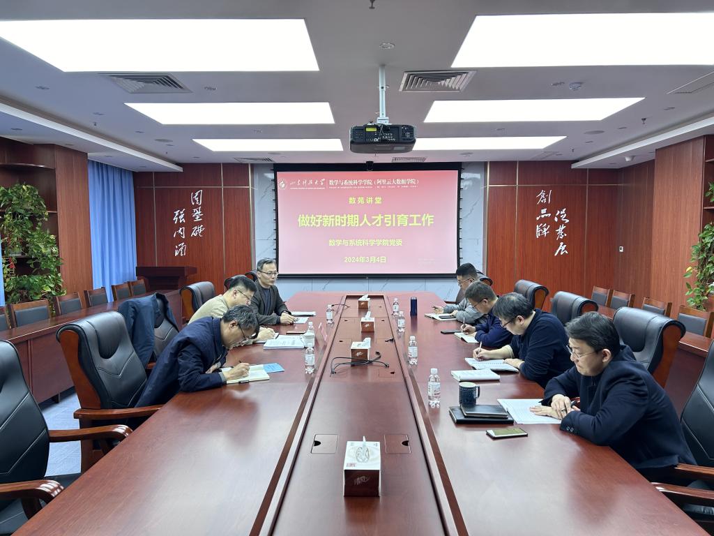 3月4日,数学与系统科学学院党委理论学习中心组开展2024年第二次集体学习。学校人才工作办公室副主任郭洪波受邀作题为《做好新时期人才引育工作》的报告,同时也作为学院“数苑讲堂”首讲。学院党委书记贾红果主持学习并讲话,学院党委理论学习中心组成员参加了学习。