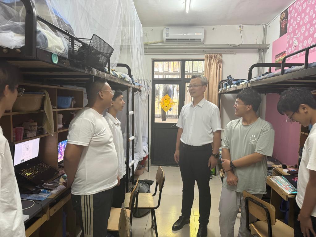 迎新工作基本结束后,学院领导深入学生公寓,对新生宿舍的设施配备、卫生状况进行了检查,并与新生亲切交流,了解新生的适应情况,勉励同学们以饱满的精神面貌迎接崭新的校园生活。(通讯员:葛天晨)