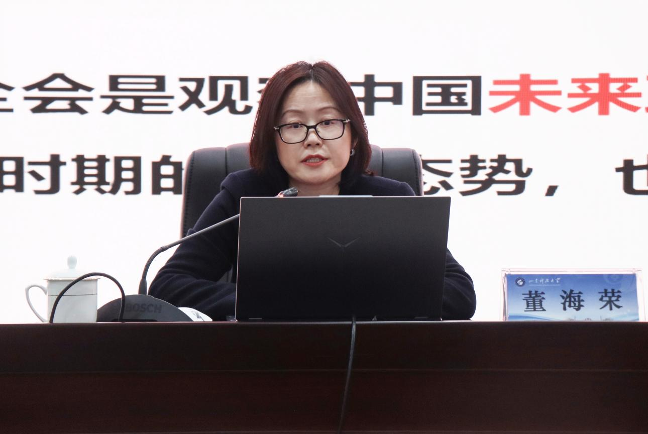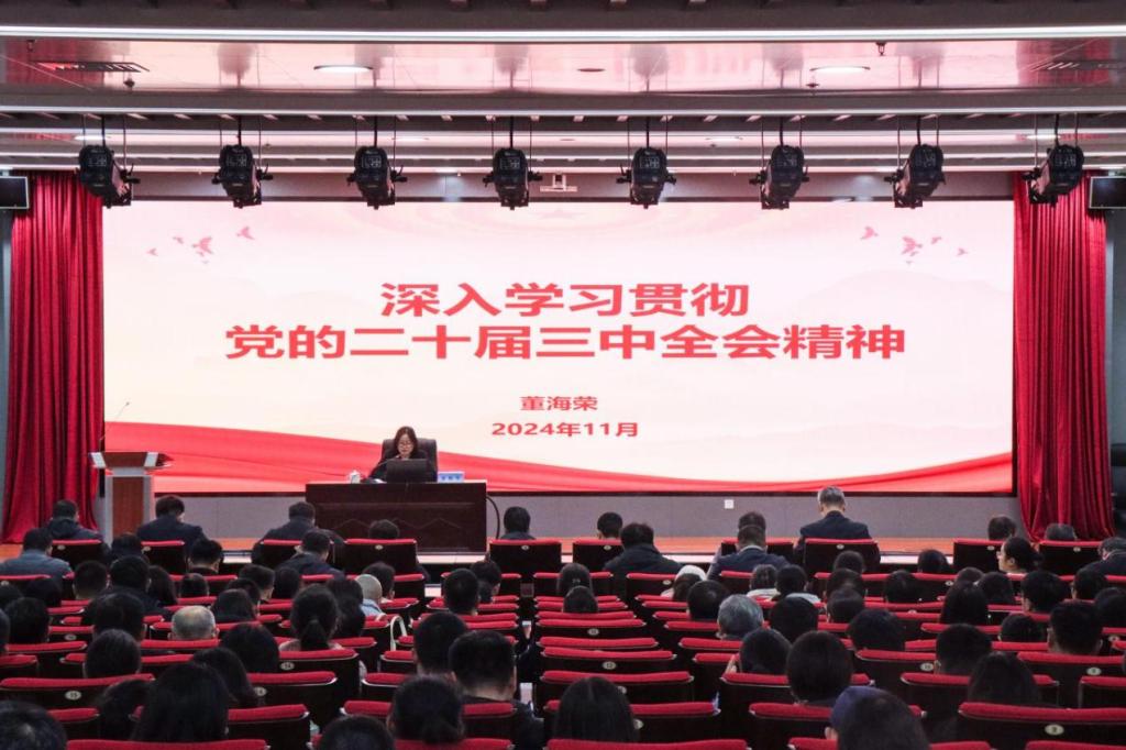 董海荣分别从全会概况、深入学习领会习近平总书记在全会上的重要讲话精神、全面准确理解《决定》提出的进一步全面深化改革重大举措、全力以赴抓好全会精神贯彻落实四个方面,系统阐释全面深入领会党的二十届三中全会精神的重要性和必要性。她指出,党的二十届三中全会是在以中国式现代化全面推进强国建设、民族复兴伟业的关键时期召开的一次十分重要的会议,学习好贯彻好这次全会精神,是当前和今后一个时期全党全国的一项重大政治任务。