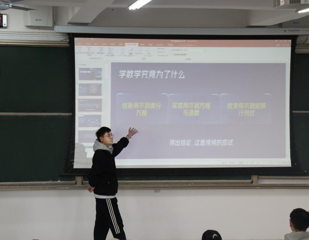 活动分为两个环节。第一个环节,往届优秀选手围绕竞赛准备、建模思路、团队合作经验、常见问题及解决方案等内容进行了深入讲解,不仅点明了同学们对于数学建模竞赛可能存在的误区,还推荐了合适的学习方法。第二个环节是现场互动环节,与会同学积极提出自己所遇到的各类问题,嘉宾们都给予了耐心的解答,现场气氛热烈。