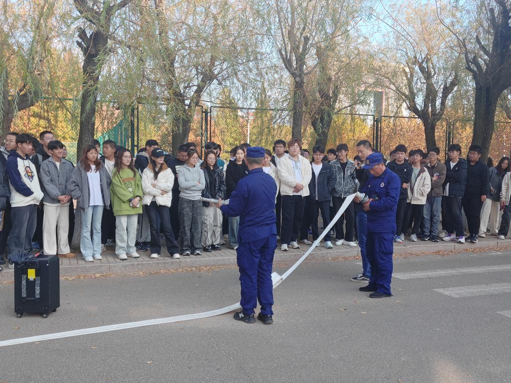 为落实提升学校消防工作“四个能力”,提高学生的消防安全意识,有效防范校园火灾事故,11月8日,必赢3003no1线路检测中心于C区学生公寓东侧道路组织了一场消防安全宣讲及演练活动,并邀请学校安全管理处消防科邵建华老师作为本次活动的宣讲嘉宾及指导专家。