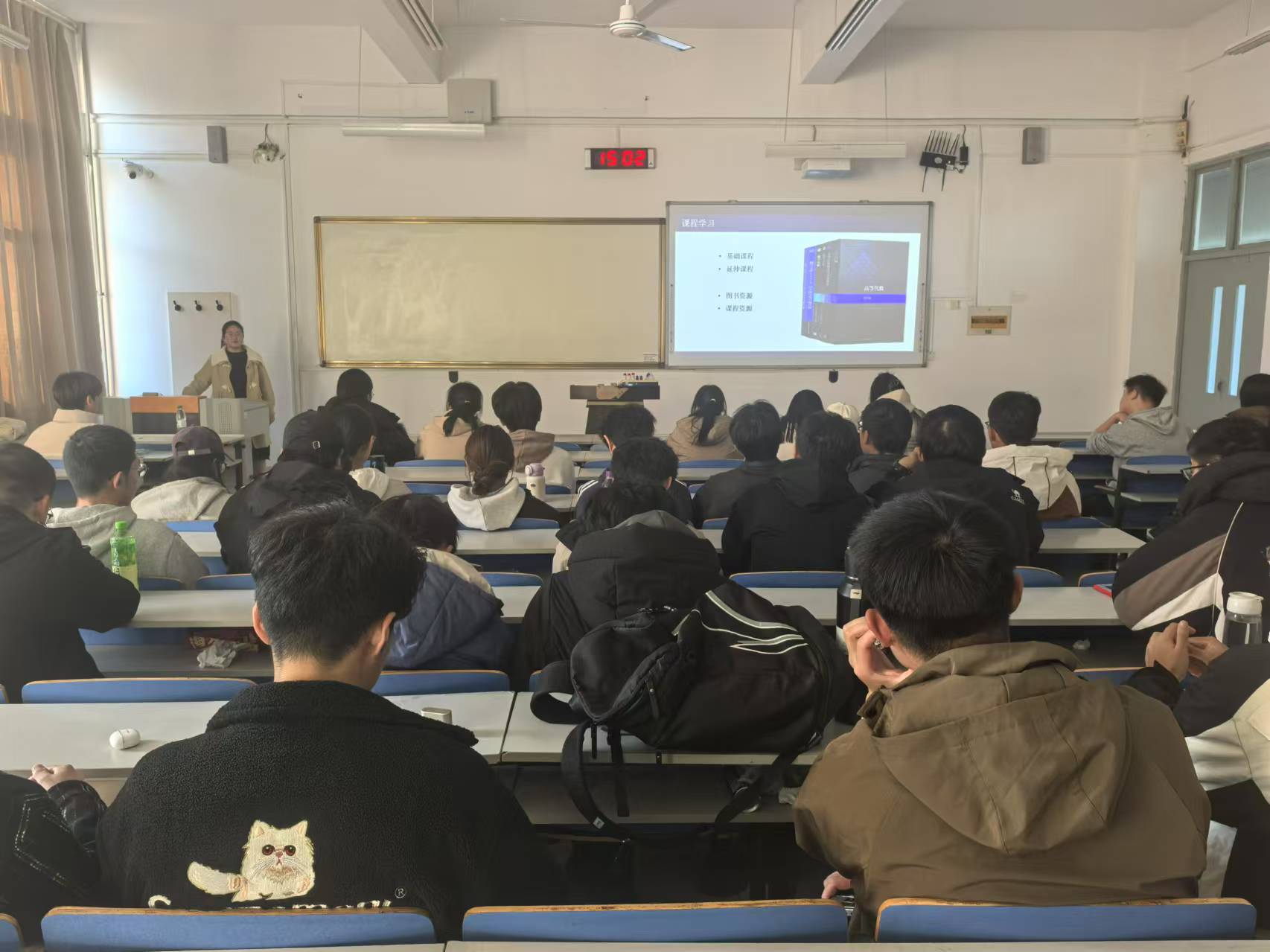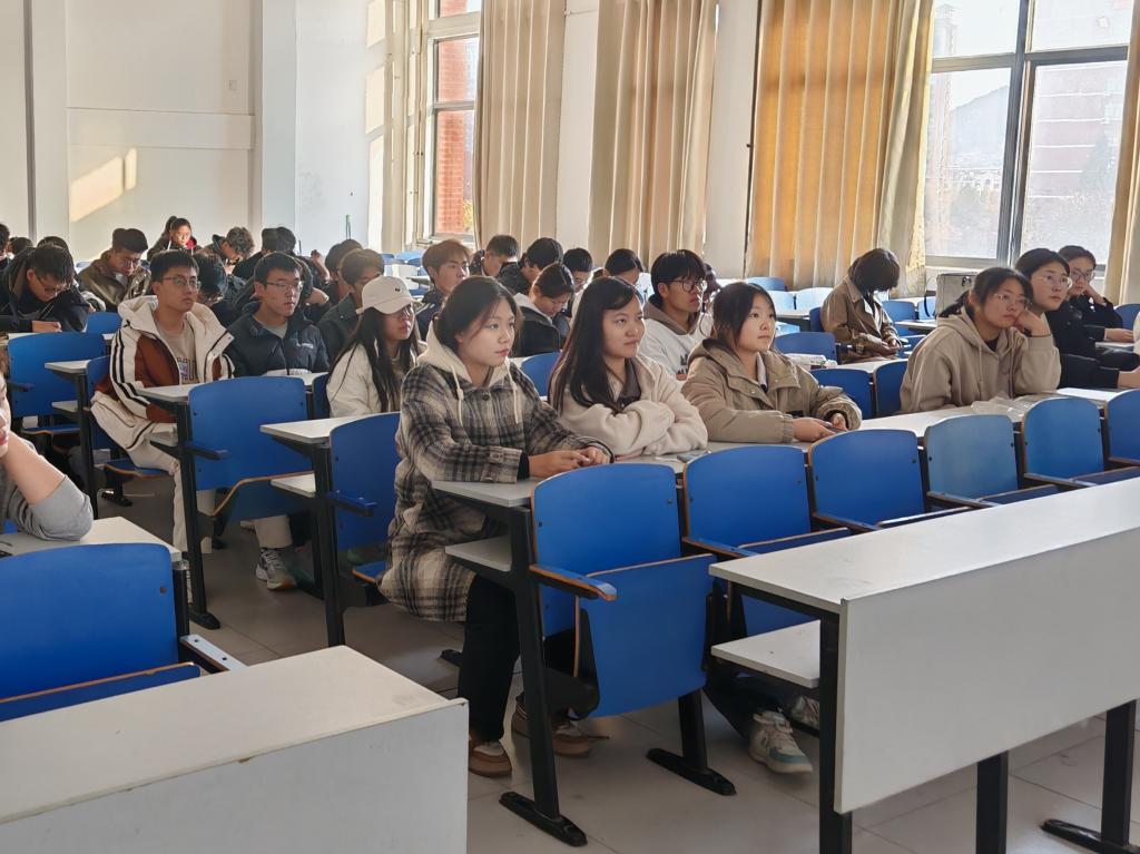 宣讲会主要由竞赛经验分享讲座和数学故事视频展示两大环节构成。在讲座中,邀请到了拥有丰富参赛获奖经验的信息与计算科学2021级1班张子君同学做报告,她以主要数学赛事的举办时间为轴,讲解了各大赛事的注意事项并分享了自己的成功经验。讲座结束后,由相关工作人员播放收集到的数学故事视频资料,向同学们展示数学的魅力与应用价值。