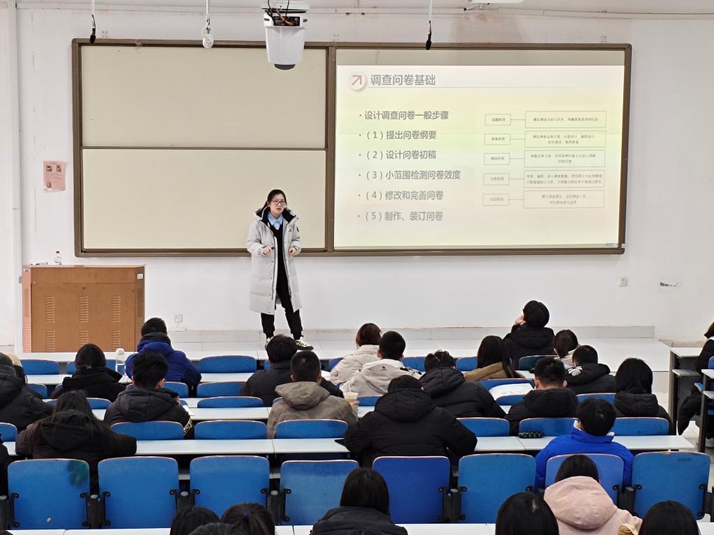 为确保参赛队伍能够准确掌握市场数据收集的关键技能,进一步提升参赛学生在市调大赛中的竞技水平,12月24日,必赢3003no1线路检测中心于 J1-228 室举办市调大赛问卷设计培训会。此次活动邀请统计系马慧子老师担任主讲嘉宾,为同学们讲解问卷设计的科学方法和实践技巧。