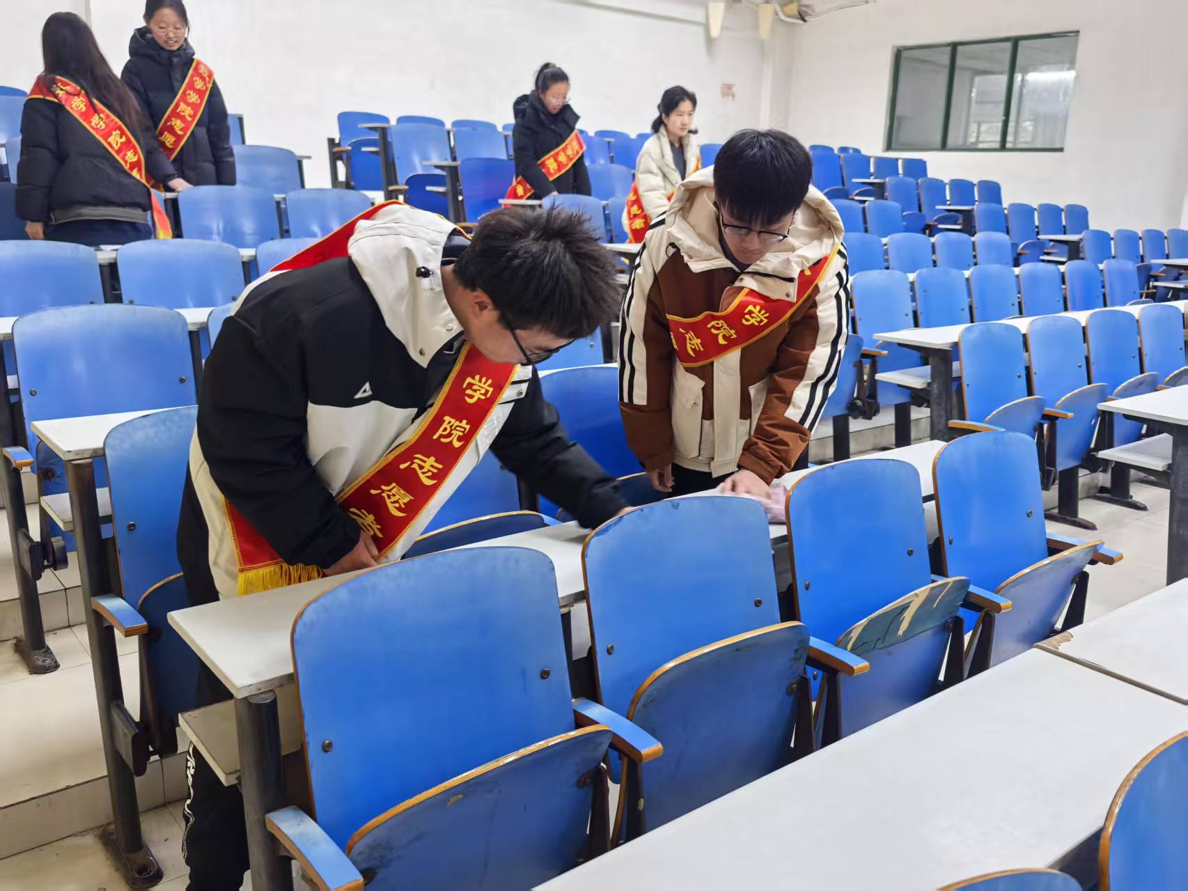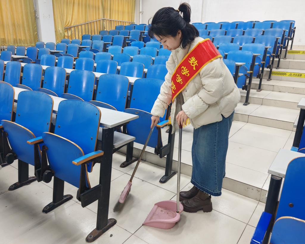 活动当天,志愿者们身披必赢3003no1线路检测中心志愿者绶带,积极投入到清扫工作中。他们穿梭于教室楼宇间、走廊和连廊内,细心擦拭桌椅、清扫地面、清除灰尘。他们认真打扫每一处角落,整理教室内的杂物,确保教学环境整洁有序。